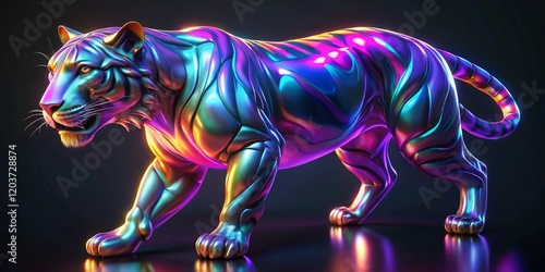 Dynamic colorful tiger sculpture urban art installation digital artwork contemporary environment low angle view creative expression