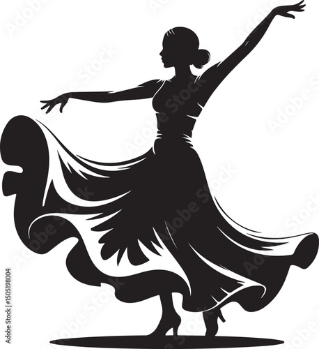 Dynamic Dancer Silhouette in Motion Expressive Dance Pose Vector Art Stylish Performer in Action Illustration Elegant Movement Dance Silhouette Artistic Dance Performance Vector Design
