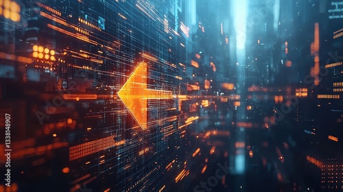 Dynamic data flow futuristic digital arrow animation in cyber city environment