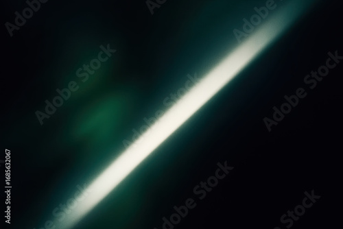 Dynamic diagonal white light beam cutting across a dark, grainy background with subtle emerald green and deep teal hues, creating a modern, dramatic, and mysterious atmospheric abstract backdrop textu