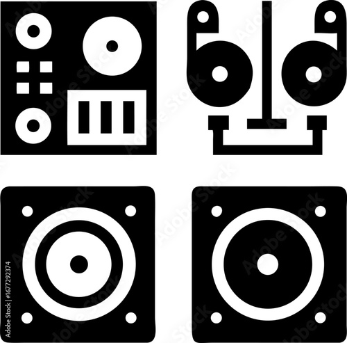 Dynamic DJ setup with turntables and speakers creating energetic music experiences