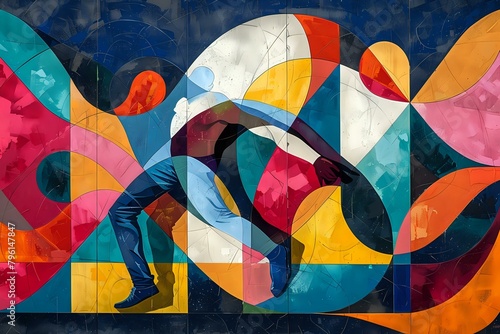 Dynamic Elegance: Vibrant Abstract Art with Human Presence