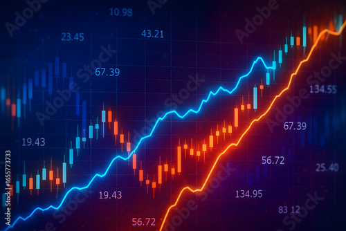 Dynamic Financial Data: A vivid representation of market trends, showcasing the rise and fall of investments through dynamic graphs and colorful lines, depicting economic progress.
