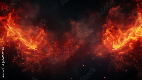 Dynamic fire flames with sparks on dark background ideal for banner or texture design