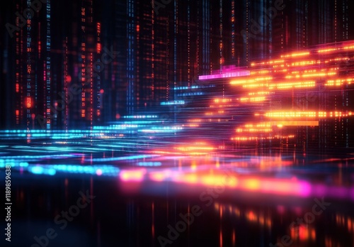 Dynamic Flow of Binary Code Abstract Cyberpunk Digital Art Vibrant Neon Technology Illustration