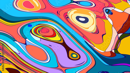 Dynamic Fluid Shapes with Vibrant Colors, Abstract Art Background for Summer Music