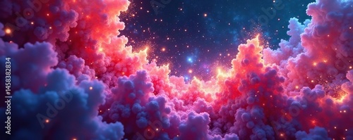 Dynamic fractal cascade, neon hues explode, shifting crystalline shapes emit glowing energy, glowing, neon