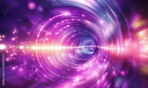 Dynamic glowing neon tunnel in shades of purple and pink, creating a futuristic and energetic design