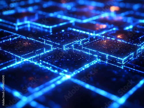 Dynamic Grid of Interconnected Cubes with Glowing Blue Edges Represents Technology
