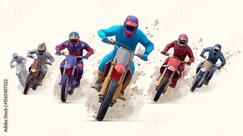 Dynamic Group of Motorcycle Riders Racing on Dirt Track Action Scene