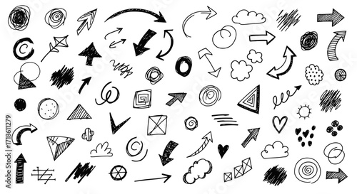 Dynamic hand-drawn doodle elements and arrows perfect for modern design projects and creative presentations