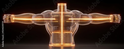 Dynamic human anatomy visualization virtual studio 3d model dark environment front view health science concept
