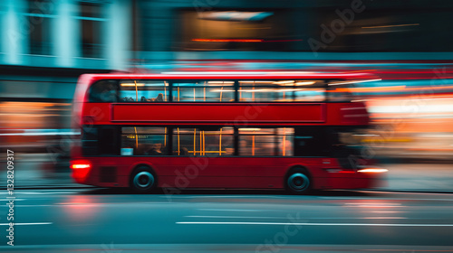 Dynamic Image of a Double-Decker Bus in Urban Setting.