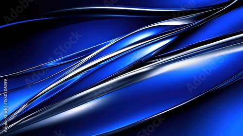 Dynamic interplay of flowing, glossy blue and silver shapes.