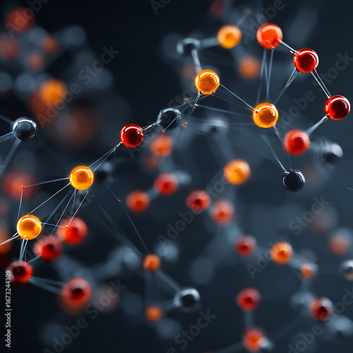 Dynamic molecular structure with vibrant colors representing scientific breakthroughs, innovation, and technological advancements in the future