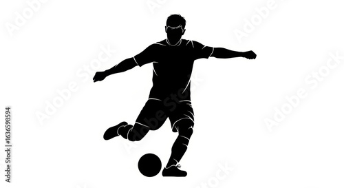 Dynamic monochrome vector illustration showcasing a football player in action striking a ball