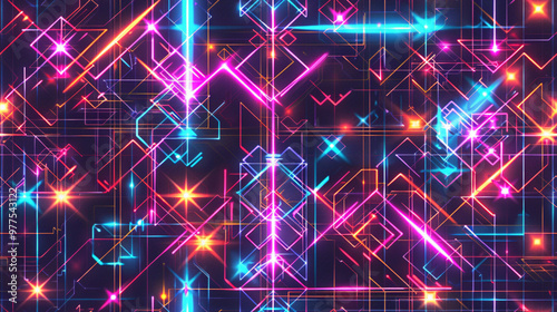 Dynamic neon blue and pink grid pattern with high-tech aesthetics and futuristic lighting effects, enhancing digital elements for video or web presentation
