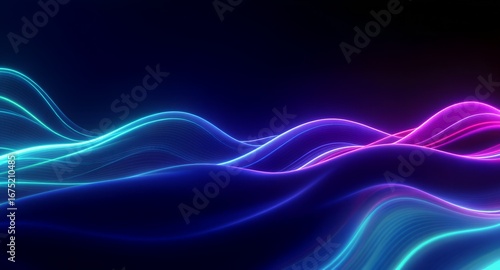 Dynamic Neon Gradient Waves: Futuristic Abstract Background with Glowing Blue and Pink Lines