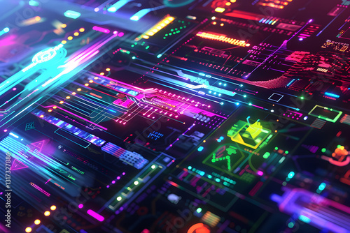 Dynamic Neon Tech Brushes Reflecting Futuristic Digital Patterns and Artistic Innovation