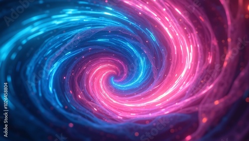Dynamic neon vortex with vibrant blue pink and purple hues merging seamlessly