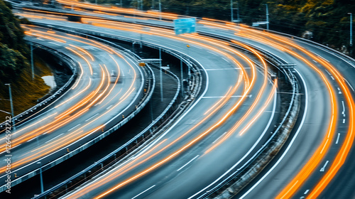 Dynamic night traffic flow on urban highways cityscape aerial view fast-paced environment motion concept