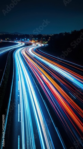 Dynamic Nighttime Traffic Trails Illuminated by City Lights