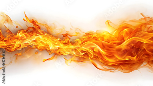 Dynamic orange and yellow flames swirling across white background fire heat