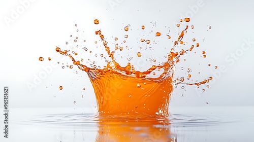 Dynamic Orange Water Splash in Mid-Air Suspension on White Background with Soft Lighting