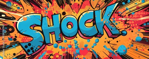 Dynamic pop art background featuring "SHOCK." Abstract patterns, Comic book elements, Bright vector
