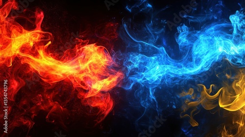 Dynamic red and blue abstract smoke display digital art moody atmosphere creative concept