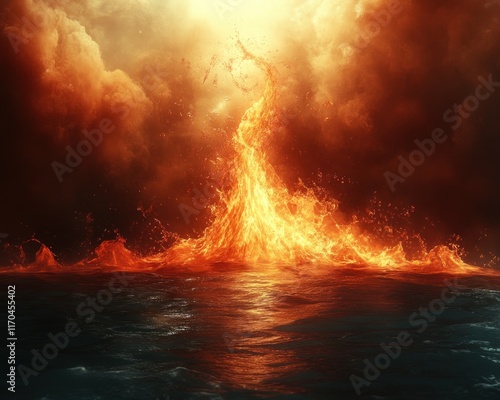Dynamic Representation of Water Splash Fire Explosion and Ethereal Smoke Abstract Expressionism Elements of Nature