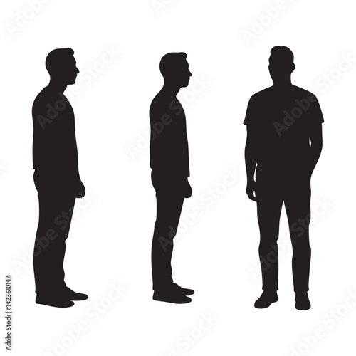 Dynamic Silhouette Trio: Three Men in Distinct Stances Capturing Movement and Direction