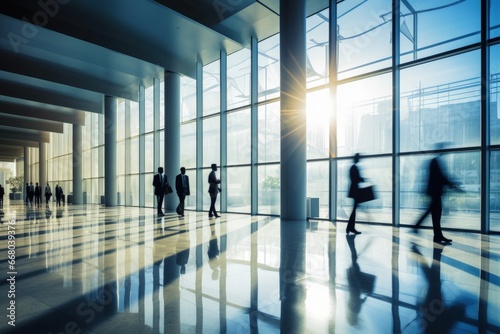 Dynamic Silhouettes of Businesspeople in Bustling City - Long Exposure, Bright Sunshine