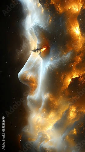 Dynamic Space Cloud Swirls in Nebula with Stars High Resolution Picture