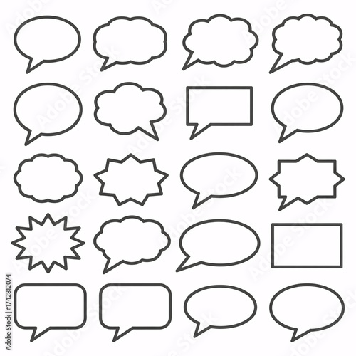 Dynamic speech bubble set, versatile designs for modern communication and creative projects, ideal for branding, web design, and marketing campaigns