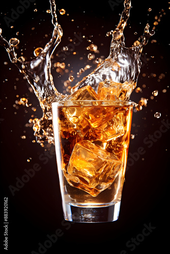 Dynamic Still-Life: Radiant Splash From a Refreshing Beverage Served in a Clear Glass