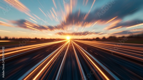 Dynamic Sunset on Railway Tracks Vibrant Gradient Sky Over Wooden Sleepers - Travel Content and Motivational Journey Imagery for Transport Promotion