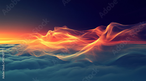 Dynamic sunset waves over clouds nature landscape ethereal viewpoint vibrant colors