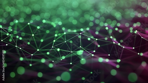 Dynamic technology background featuring green and magenta dots connected in an intricate plexus pattern