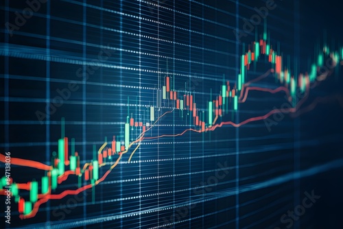 Dynamic trading chart with green and red bars showing financial market fluctuations