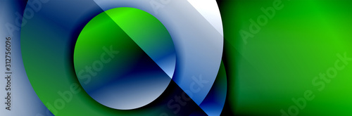 Dynamic trendy geometrical abstract background. Circles, round shapes 3d shadow effects and fluid gradients. Modern overlapping round forms