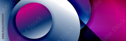 Dynamic trendy geometrical abstract background. Circles, round shapes 3d shadow effects and fluid gradients. Modern overlapping round forms