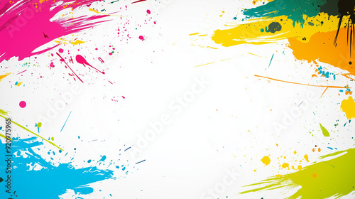 Dynamic Vector Illustration of Colorful Paint Splashes and Ink Blots with White Background and Space for Design or Text, Featuring Vibrant Brush Strokes Creating a Visually Striking and Artistic Compo