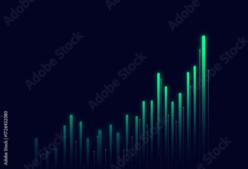 Dynamic Visualization of Vertical Bars Illuminated in a Gradient of Neon Green Against a Dark Background Representing Data or Sound Frequency Analysis