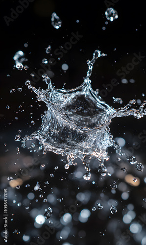 Dynamic Water Droplets Isolated on Black Background – High-Speed Captures, Ripples, Splashes, and Mist in Elegant Motion