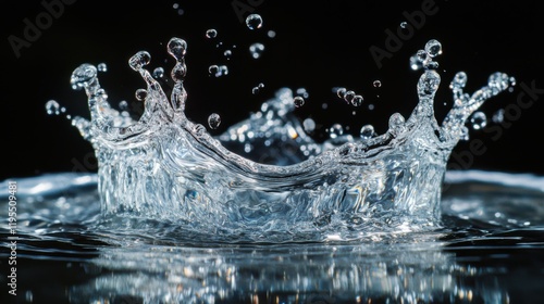 Dynamic water splashes create stunning patterns of crystal clarity against a dark backdrop