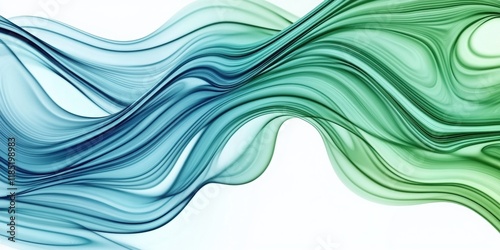 Dynamic wavy abstract lines in vibrant blue and green create a flowing sensation against a clean, minimalistic background, adding depth and movement to any design