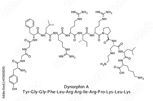 Dynorphin A biomolecule molecular formula. Skeletal molecule structure vector eps10.