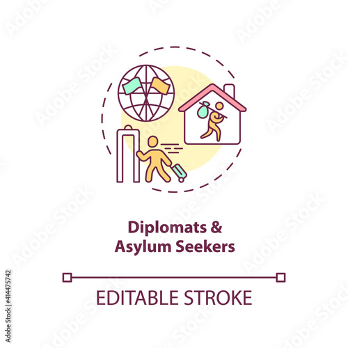 Dyplomats and asylym seekers concept icon. Business travel during covid pandemic idea thin line illustration. Safety measures for travelers. Vector isolated outline RGB color drawing. Editable stroke