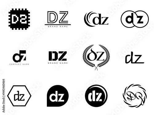 DZ logo company template. Letter d and z logotype. Set different classic serif lettering and modern bold text with design elements. Initial font typography.